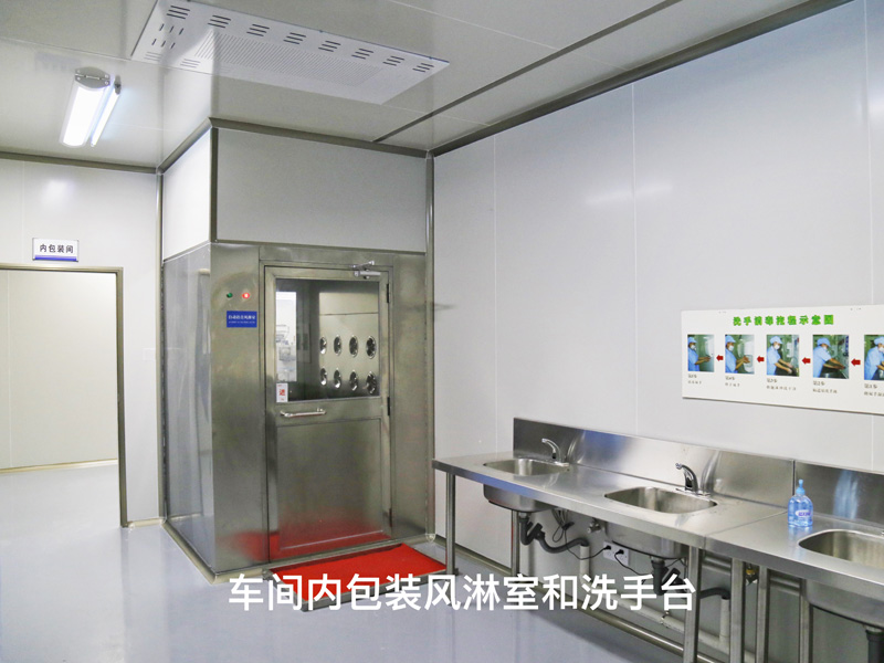 車間內(nèi)包裝風(fēng)淋室和洗手臺(tái)